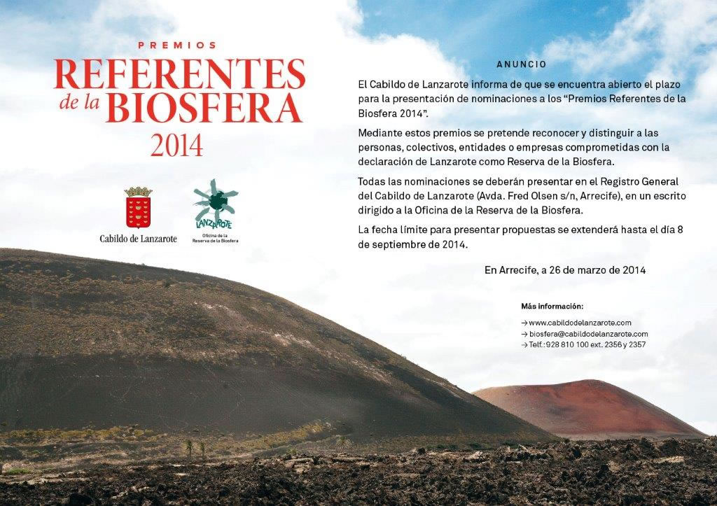 El Cabildo de Lanzarote, a través del Consejo de la Reserva de la Biosfera, en aras de reconocer aquellos comportamientos colectivos o individuales respetuosos con la filosofía del Programa Hombre y Biosfera de la Unesco, desea impulsar el Premio anual Referente de la Biosfera.