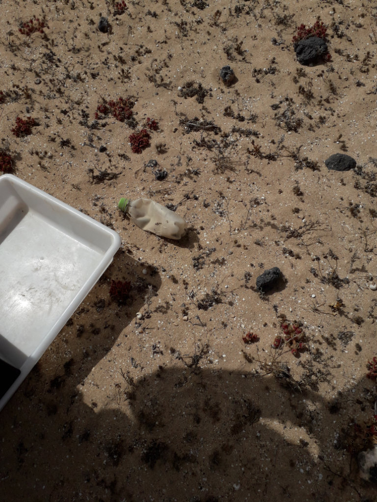 Limpieza de la playa de la Cantería y Campaña de concienciación para la reducción del uso de bolsas de plástico que consiste en ir puerta a puerta recorriendo las casas de Órzola repartiendo 1 bolsa de tela por cada vivienda a cambio de bolsas de plástico de cada casa