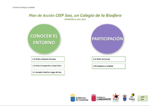 Al inicio del curso escolar, cada Colegios de la Biosfera adheridos a este proyecto, establece un Plan de Acción, formado por una o varias Líneas de Acción que se definen en los Espacios de Trabajo Grupal. En estos Espacios participan: