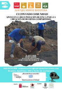 El Cabildo de Lanzarote, a través del Área de la Reserva de la Biosfera y en colaboración con Ayuntamiento de Tías, ha organizado la acción de voluntariado “Cultivando Comunidad” sumándose así a Huertos Compartidos de Lanzarote como una acción de apoyo para la adecuación del primer terreno en el que se proponen estos cultivos.