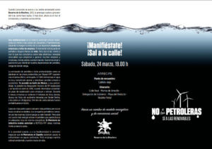 Este compromiso (en esto consiste el Sí a las Renovables), tiene como antecedente la gran manifestación celebrada el 24 de Marzo de 2012 contra las prospecciones petrolíferas . Por propia coherencia, la sociedad de Lanzarote añadió al lema «No a las Prospecciones» , «Sí a las renovables»