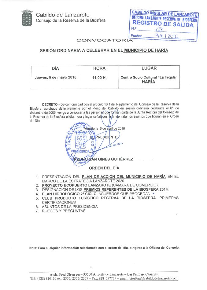 El Consejo de la Reserva de la Biosfera celebrará a partir de las 11.00 horas de mañana jueves, 5 de mayo, una sesión ordinaria en el Centro Socio Cultural ‘La Tegala’ de Haría.