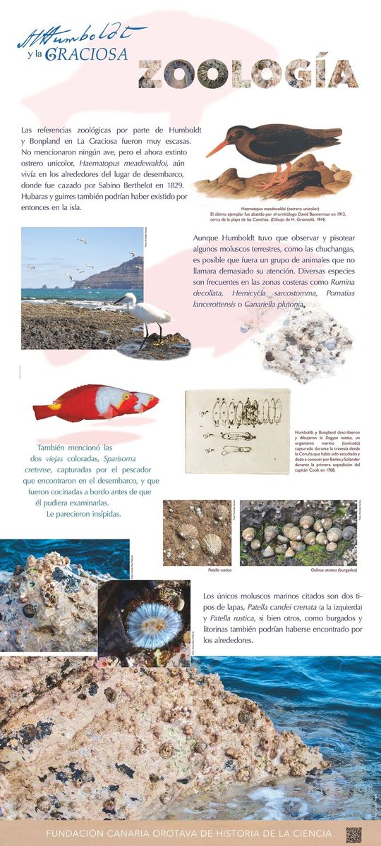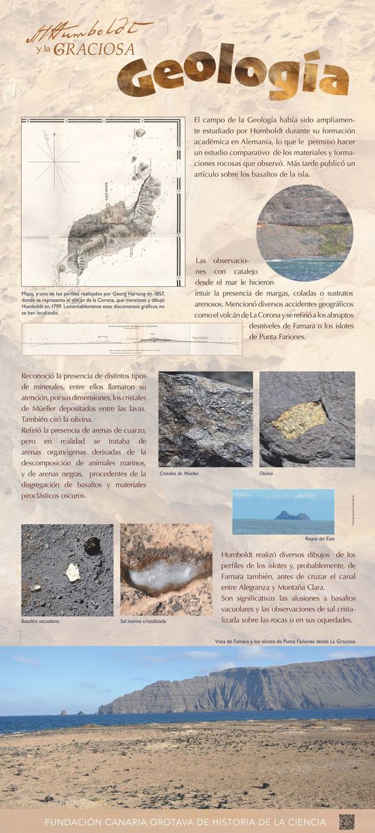Por otro lado, se ha intentando recopilar todo el entorno botánico, zoológico y geológico que Humboldt pudo encontrarse en 1799 en La Graciosa, aunque en sus apuntes sólo describa algunos especímenes de seres vivos con los que se tropezó, o algunos detalles geológicos concretos, en las pocas horas de que dispuso para realizar su exploración en tierra firme.
