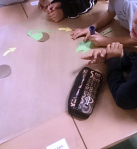 Primero, se hizo un mural del ciclo de la vida. Después, para observar el papel descomponedor de las bacterias se pusieron varios trozos de fruta en botes de cristal previamente esterilizados. Uno de los trozos se cortó con las manos limpias, mientras que el otro fue con las manos sucias. Además, uno de ellos contenía una pegatina, con el fin de que los alumnos pudieran observar la degradación llevada a cabo por las bacterias en la fruta y a la vez observar como el papel de la pegatina seguía intacto a pesar del paso del tiempo.