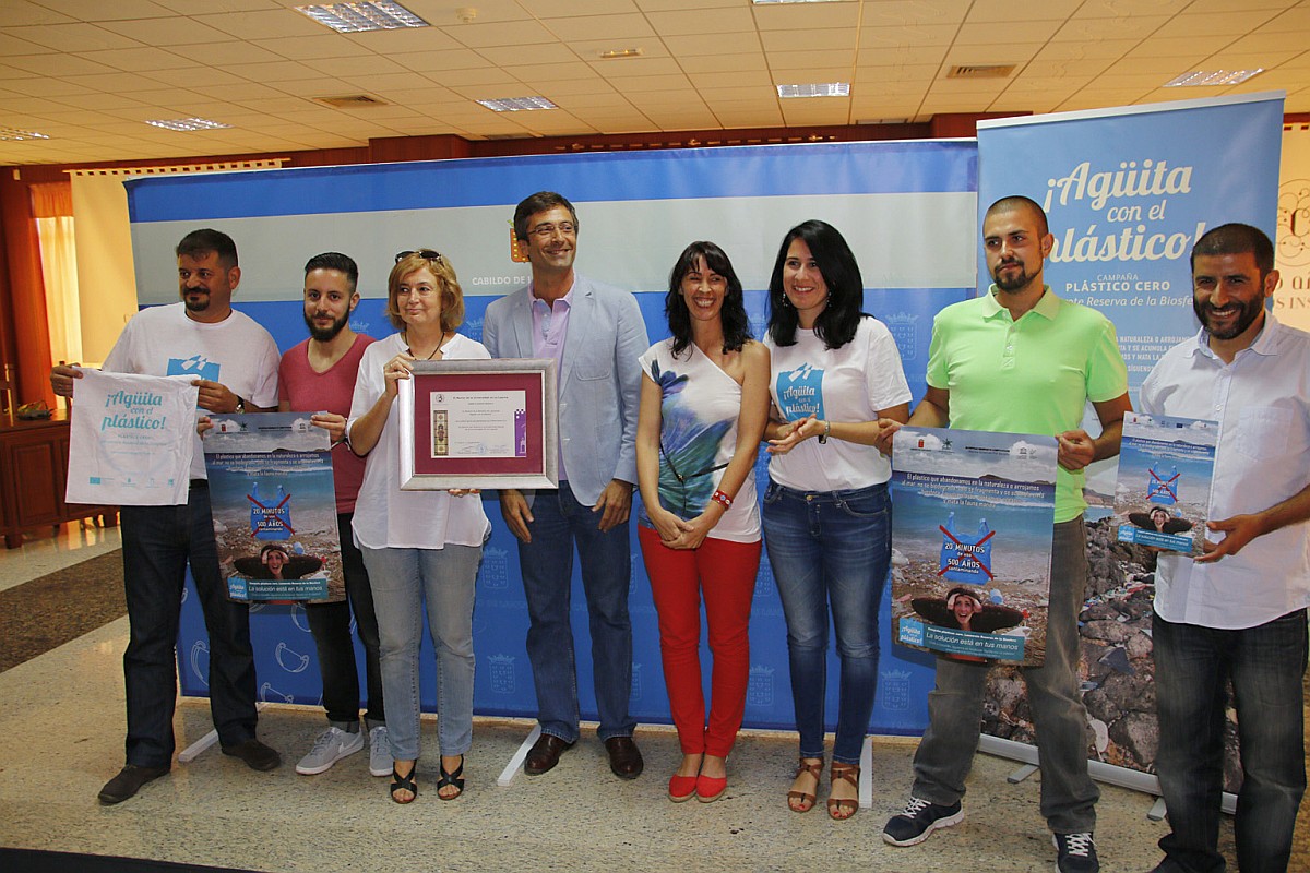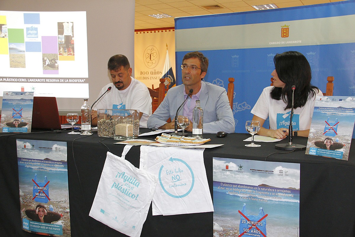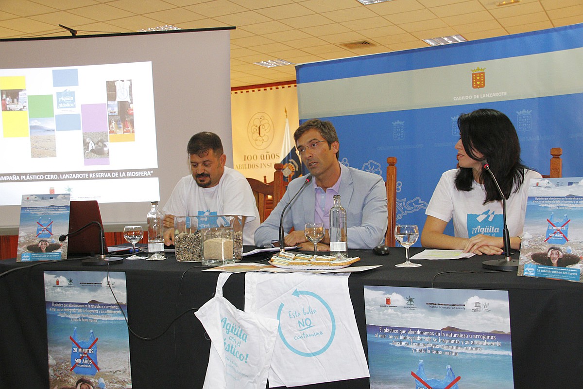 El presidente estuvo acompañado en esta presentación por la gerente de la Oficina de la Reserva de la Biosfera, Ana Carrasco, y por el técnico y especialista en la materia, Rafael Mesa, quien ha desarrollado la parte divulgativa de la campaña, a través de charlas y conferencias sobre el problema de los plásticos; y Marila S. Medero, técnico que junto a otras tres personas más están trabajando en esta campaña del Cabildo gracias a una beca de formación de inserción laboral.