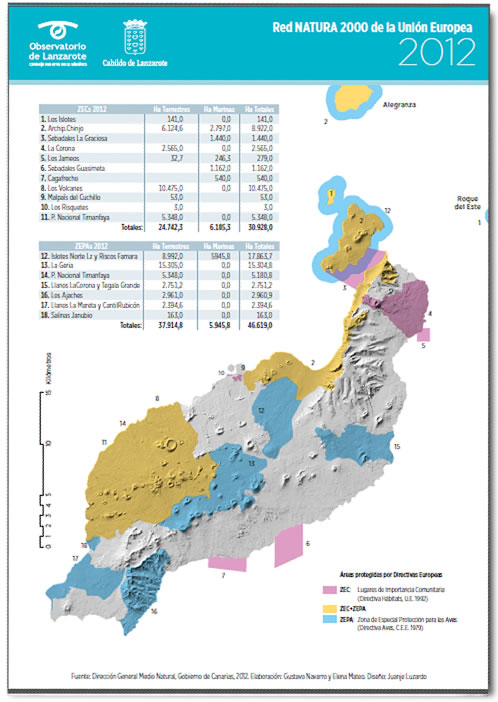 Pese al compromiso con la U.E., Canarias no ha elaborado normativa propia que desarrolle la Red Natura 2000, si bien las áreas ZEPA suelen coincidir con espacios protegidos. El entorno marino de Lanzarote tiene muy escasa representación LIC, si consideramos sus riquezas y amenazas ya conocidas.