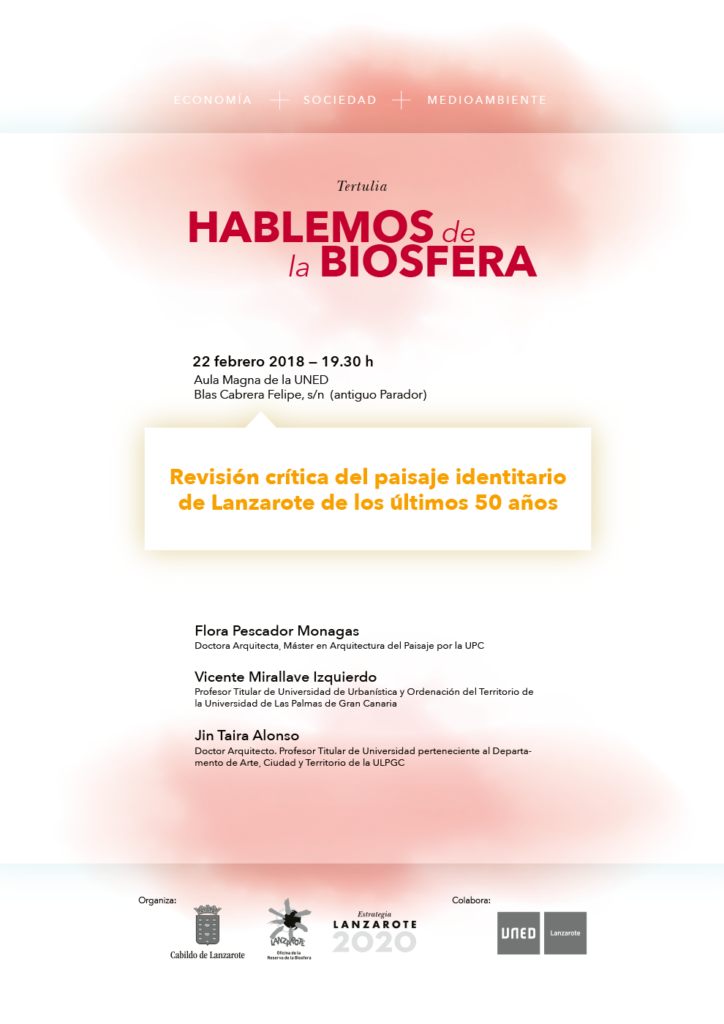 El presidente del Cabildo de Lanzarote, Pedro San Ginés, quien “anima e invita a todos los interesados a asistir a esta interesante charla”, explica que, dentro de los objetivos de la ‘Estrategia Lanzarote 2020’, “en el año 2016 se encargó este estudio con la intención de desarrollar un diagnóstico que analizase la situación actual de la isla y su posicionamiento en relación con la marca e identidad de Lanzarote». «Fruto de este documento, denominado BioCrit», detalla el presidente, «se elaboró un extenso trabajo analítico con el aporte de un catálogo pormenorizado en los campos de la ‘Movilidad, Estructura, Espacios libres, Arquitectura e Infraestructura’ con una extensiva compilación temática de usos en el territorio a modo de catálogo, destacando principalmente aquellos procesos de transformación que han antropizado el medio”.