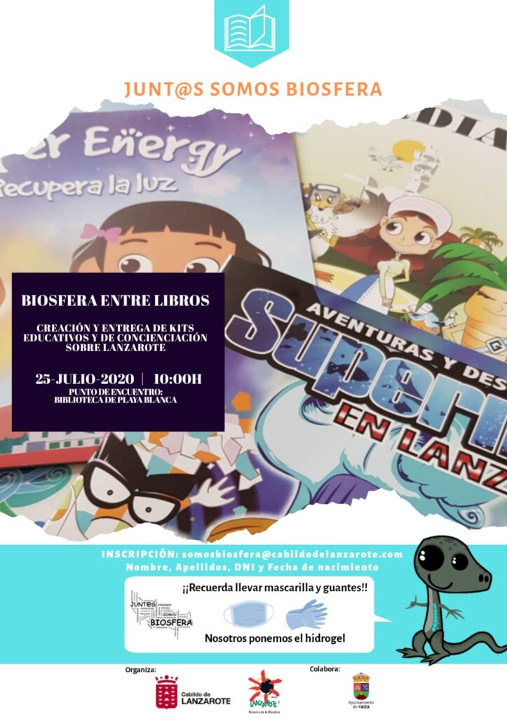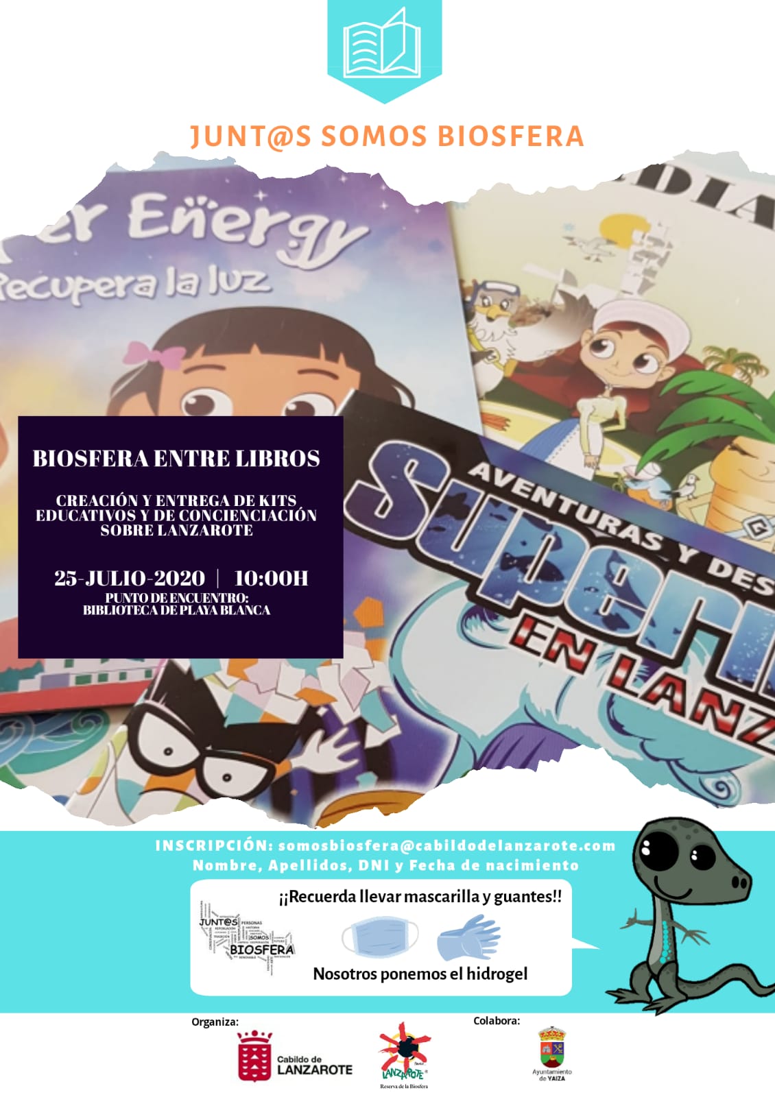El Cabildo de Lanzarote, a través del Área de la Reserva de la Biosfera y en colaboración con Ayuntamiento de Yaiza, organiza la acción de voluntariado socioambiental “Biosfera entre Libros”. La actividad, que consistó en la creación y entrega de kits educativos y de concienciación sobre Lanzarote, se llevó a cabo el sábado 25 de julio, de 10 a 12.30 horas, en la biblioteca municipal de Playa Blanca. Acción abierta al público voluntario para un máximo de 20 personas.