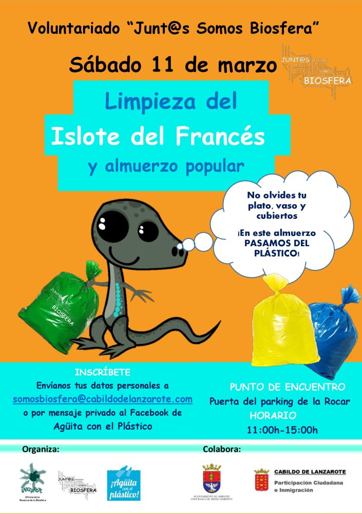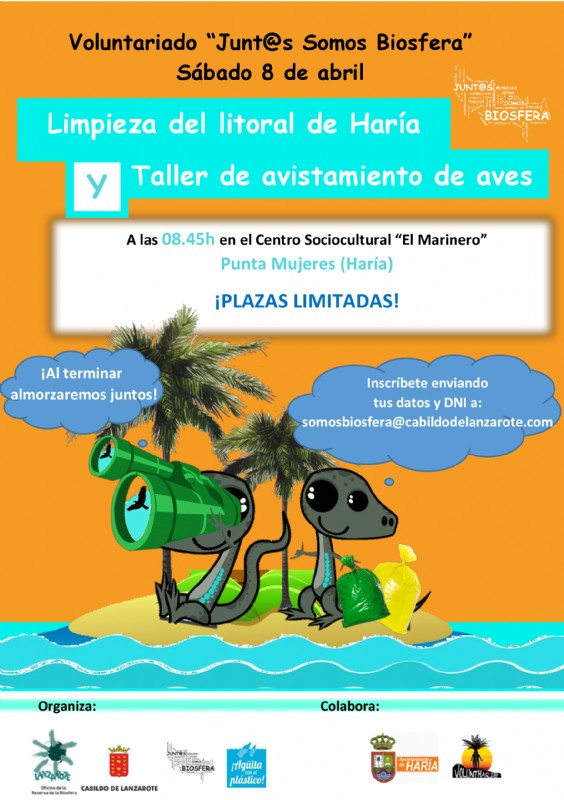 Esta acción estará abierta al público con un máximo de 20 voluntarios. Las personas interesadas en participar pueden inscribirse enviando un correo a somosbiosfera@cabildodelanzarote.com con el nombre, apellidos, DNI y fecha de nacimiento. Hay que llevar mascarillas y guantes. Estas condiciones podrían verse modificadas según se desarrolle la situación insular sobre la pandemia del COVID-19.