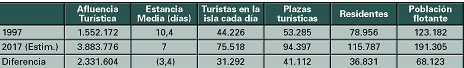 más, pasando de 0.56 a 0.65 turistas presentes diariamente en la Isla por cada residente.